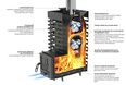 • Глубокая невентилируемая каменка-труба из стали 09Г2С толщиной 4 мм прогревается открытым пламенем для максимального нагрева камней, заложенных в нее и выполняет роль пламегасителя.