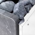 Простые формы каменки выгодно подчеркнуты 4 вертикальными камнями талькохлорита, которыми облицованы передняя и задняя стенки печи. Материал боковых стенок представляет собой высококачественную нержавеющую сталь, защищающую все внутренние элементы прибора от влаги, температурных перепадов и коррозии.