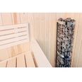 • Вертикальное размещение камней позволяет менять характер тепла в зависимости от подачи воды: сверху для интенсивного горячего парения и сбоку для мягкого и легкого пара.