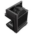 Г-образное стекло из жаропрочной стеклокерамики вставлено в угловую распашную дверцу поверх узкой рамки справа, что увеличивает обзор на игру пламени из-за отсутствия чугунной стойки. Каминная топка предназначена для установки в колонну, во внешний выступ перегородки или на специальный подиум.